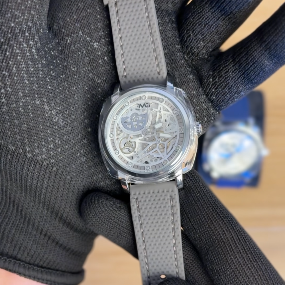 تميّز بأناقة فريدة مع هذه الساعة الرجالية بتصميم هيكلي شفاف. تتميز هذه الساعة بتصميم ميكانيكي مفتوح يكشف تفاصيل الحركة الداخلية بكل دقة، ما يجعلها خيارًا مثاليًا لعشّاق الساعات الفاخرة وعشاق التفاصيل.
